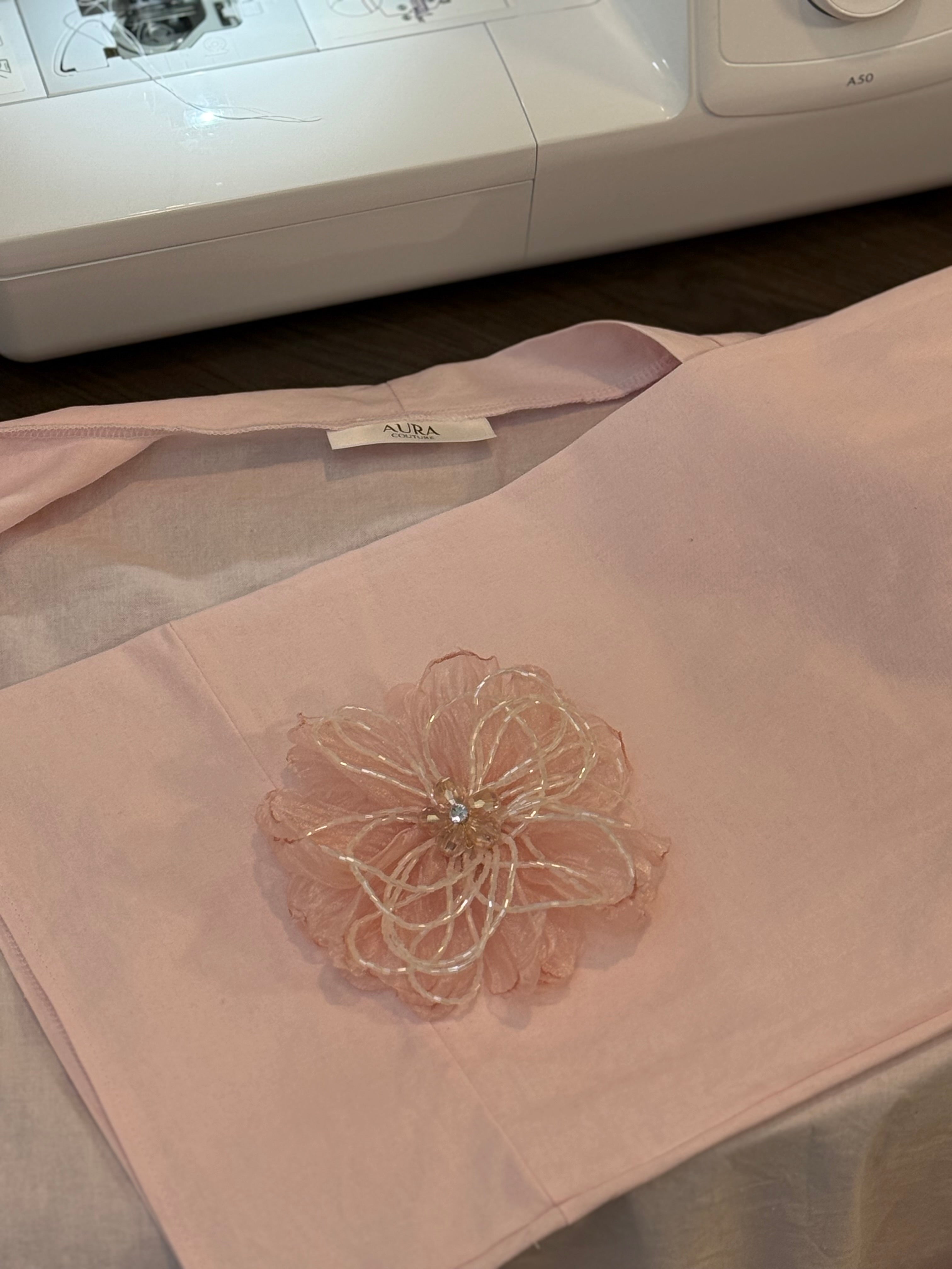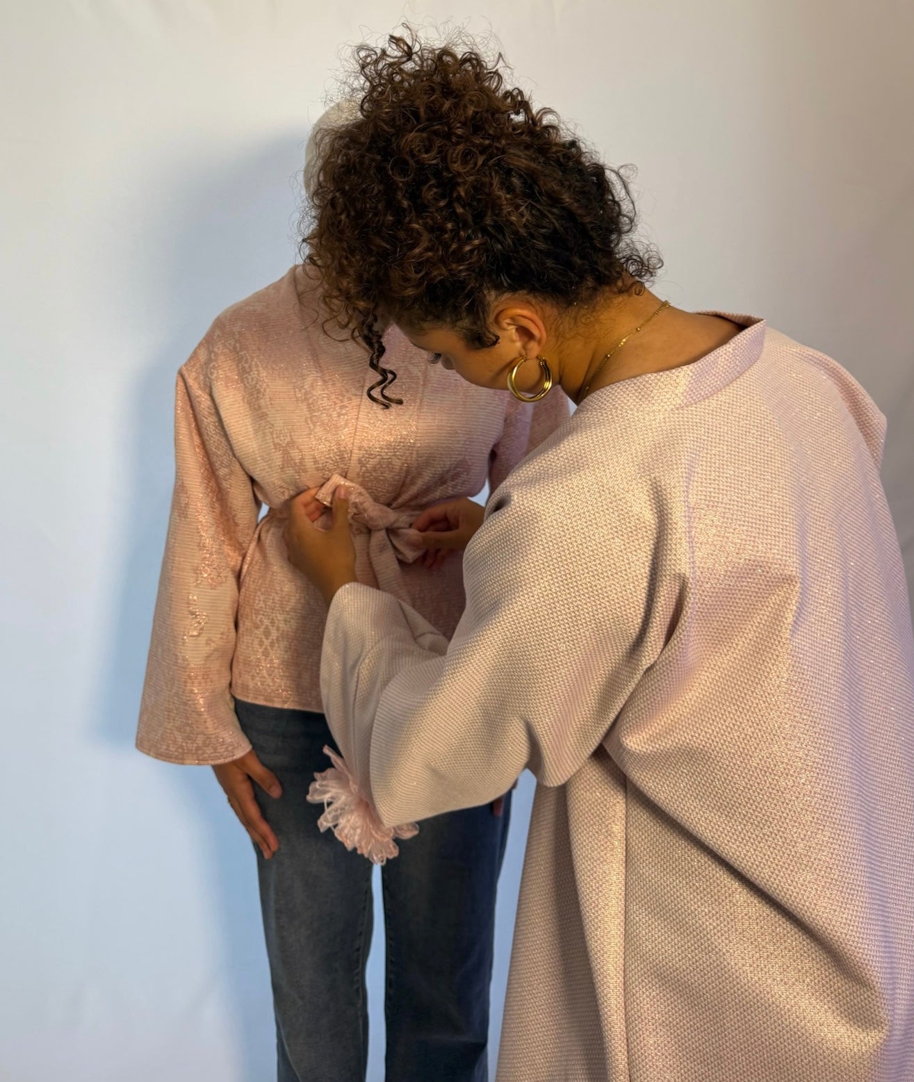 Les tissus sont choisis un à un avec soin : des étoffes uniques, nobles, pour que chaque pièce soit exceptionnelle — à la hauteur de celle qui la porte.